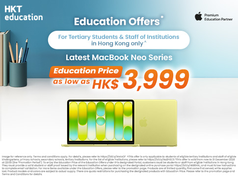 The Education Offers programme is exclusively for students and staff from kindergarten, primary, secondary & tertiary institutions in Hong Kong. Enjoy discounts of up to 50% across more than 35 brands and over a thousand products, including a range of 5G handsets, AI smart gadgets & Apple products. Mac / iPad offers available for tertiary students and staff. Shop anytime throughout the year to easily meet your learning and work needs. Click here to learn more & register now.